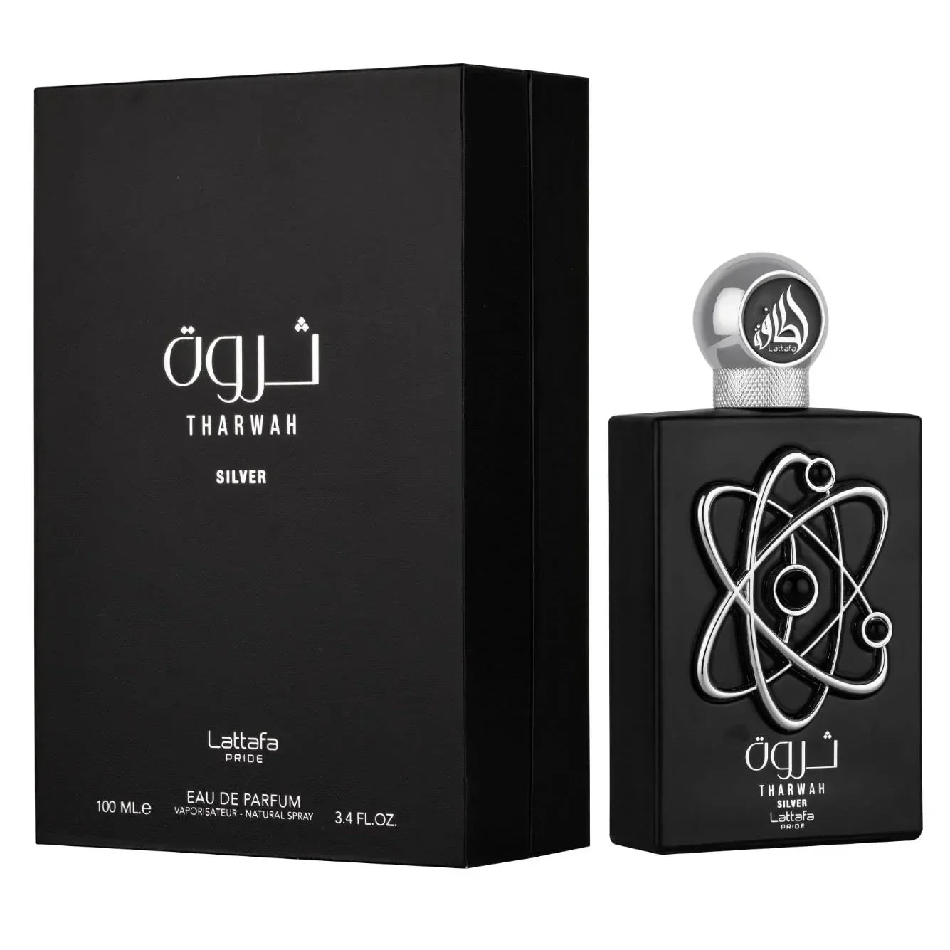 Lattafa Tharwah Silver 3.4 oz EDP is a clean, aromatic fougère crafted for warm-weather wearers who appreciate modern freshness with subtle nuance. It opens with a crisp blend of bergamot and mint, delivering an energizing, slightly sweet introduction. Mid-notes of clary sage and lavender bring herbal-floral character, softly balancing the brightness. Dry-down develops into a warm, woody base of vetiver, cedarwood, and musk, giving it elegant depth. Frequently compared to Ralph Lauren’s Ralph’s Club, YSL Y EDP, or Invictus, it stands out with its aromatic complexity and subtle bubblegum-soapy undertone. Longevity is above average—lasting around 6–8 hours, with moderate projection in the first few hours before settling into a skin-close trail. Some reviewers note a synthetic or “soapy” facet early on that mellows with a bit of wear. Overall, Tharwah Silver excels as a versatile everyday freshie with personality. It’s cool, energizing, and approachable—perfect for spring and summer days or outdoor activities.