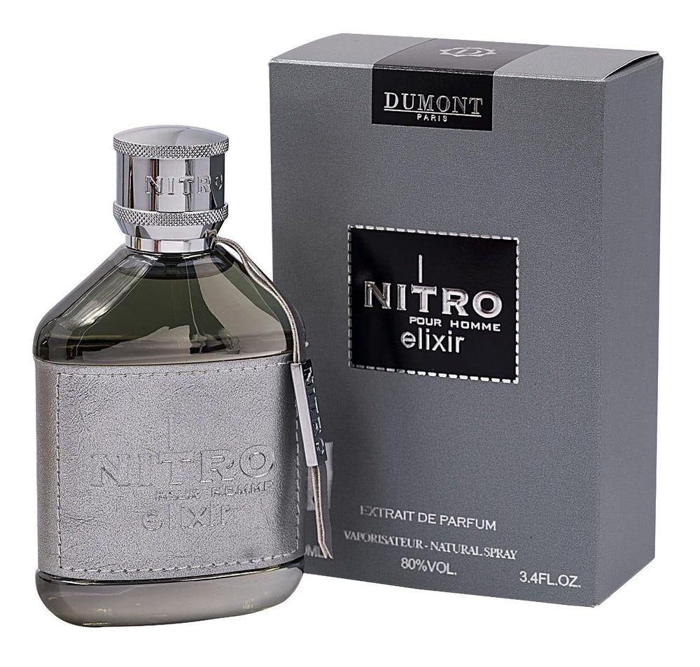 Nitro Elixir 3.4 oz Extrait de Parfum for men is an intense and powerful fragrance crafted for bold sophistication and lasting impact. It opens with a vibrant burst of citrus and spicy accords, creating an energetic and commanding start. The heart reveals warm amber, lavender, and hints of cardamom, adding depth and elegance. The base lingers with rich oud, sandalwood, and musk, leaving a strong, sensual trail. Perfect for men who want a fragrance that radiates confidence and strength.